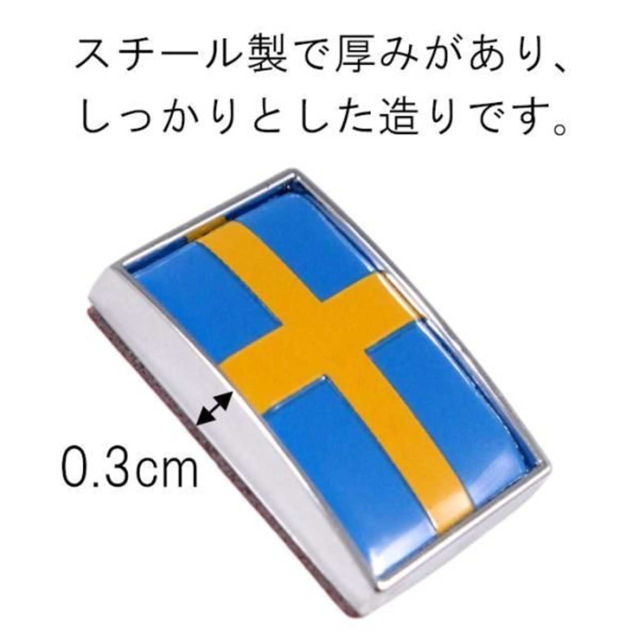 商品名:エンブレム スウェーデンカラー ボルボ などに最適 スチール製 リア サイド ステッカー スウェーデン国旗 3D 車 おしゃれ