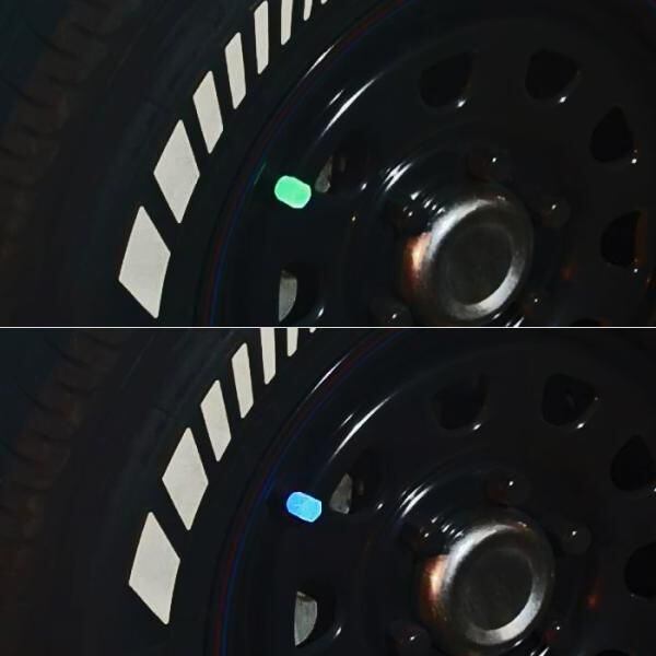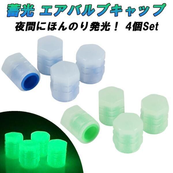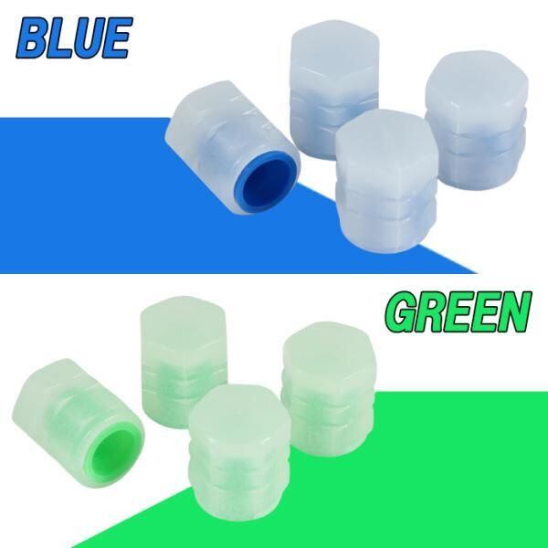 商品名:蓄光 タイヤ エアバルブ キャップ 4個セット 光る 夜光 蛍光 車 トラック バイク ホイール エアー ホンダ トヨタ ニッサン 日産 マツダ スバル ダイハツ スズキ