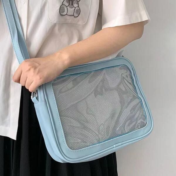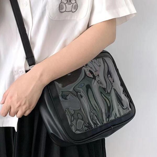 商品名:痛バッグ ショルダーバッグ PUレザー製 痛バ いたバッグ オタ活 ヲタ活 推し活 ヲタバッグ オタバッグ 缶バッジ おし活 透明 クリア 窓 レディース カワイイ