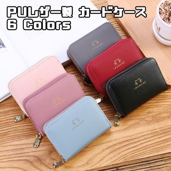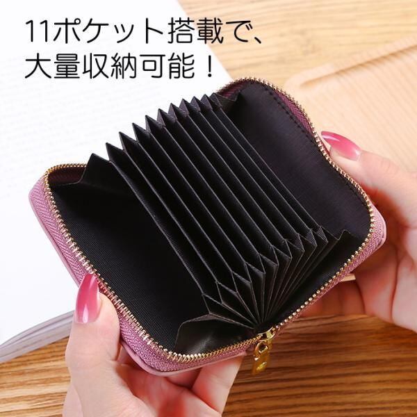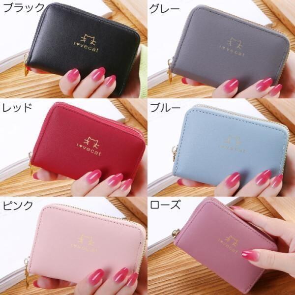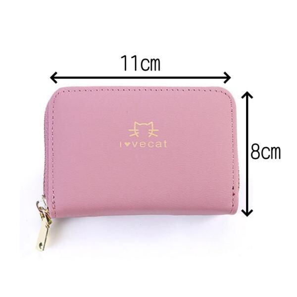 商品名:カードケース ラウンドジッパー レディース カード入れ カード 収納 大容量 PUレザー製 猫 CAT じゃばら おしゃれ かわいい たくさん入る 見やすい