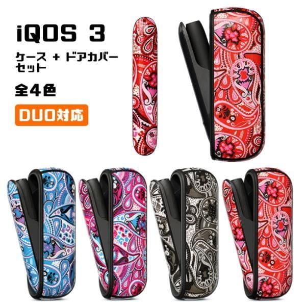 iqos3ケース IQOS3 アイコス3 専用 ケース + ドアカバー セット ペイズリー柄 全4色 カバー おしゃれ レディース メンズ DUO デュオ アイコス3ケース