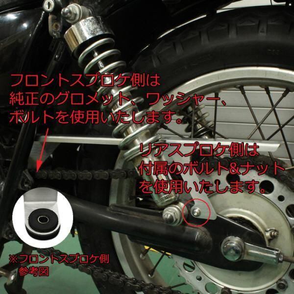 ・フロントスプロケ側の固定は純正のグロメット、カラー、ワッシャー、ボルトを移植し使用してください。