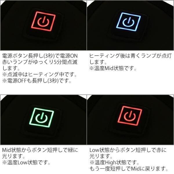 温度調整機能:3段階(Highモード100%/Midモード70%/Lowモード50%)