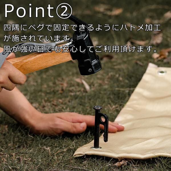 四隅にペグで固定できるようにハトメ加工が施されています。