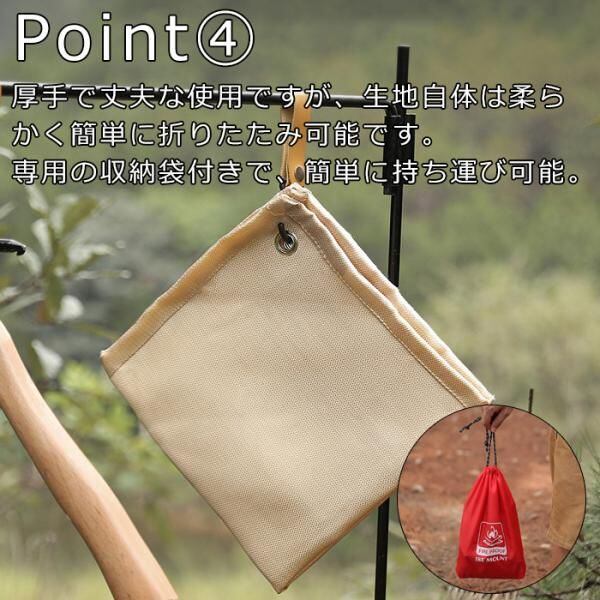 商品名:スパッタシート 1.0m×0.8m 焚火シート 焚き火シート 防火シート グラスファイバー製 ハトメ付き 焚火台 たきび たき火 アウトドア キャンプ 耐熱 耐火 マット