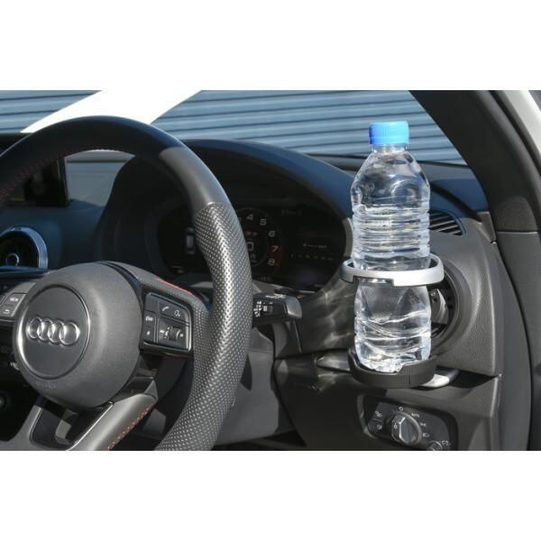 使用時はホルダー部分を上下に開いて、ペットボトル、缶、紙パックなどのドリンク類をホールドできます。運転中にもアクセスし易い位置で、夏はエアコンの冷気でドリンクを冷たく保てます。