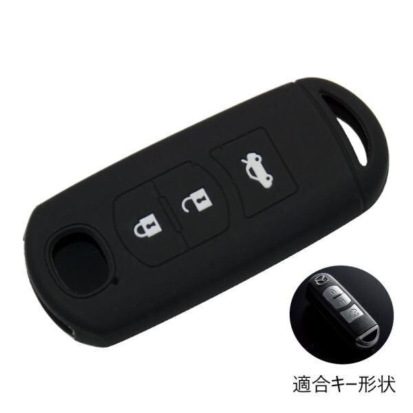マツダ シリコン キーカバー ブラック ラゲッジルームボタン付き MAZDA 3つボタン CX-3 CX-5 CX-8 スマートキー アドバンスキー キーケース キーホルダー | unistarcar