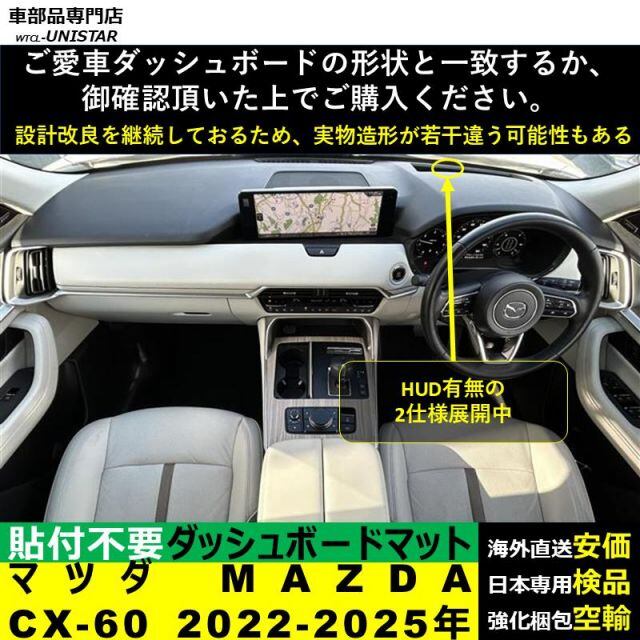 ダッシュボード マット マツダ MAZDA CX-60 2022-2025年 適用 汎用品 光反射防止 安全運転 キズ防止 滑り止め 高級 高質PU革 ベルベット 文字入れ ドレスアップ | unistarcar