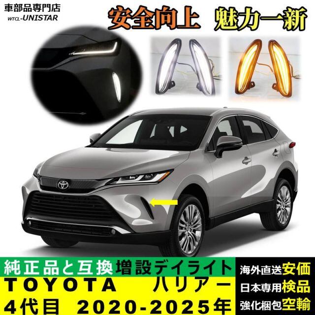 デイライト LED 増設 汎用品 トヨタ TOYOTA ハリアー 4代目 2020-2025年 適用 LEDデイライト 電源点灯 DRL ウインカー 2本セット 被視認性 防水 高級化 安全運転 | unistarcar