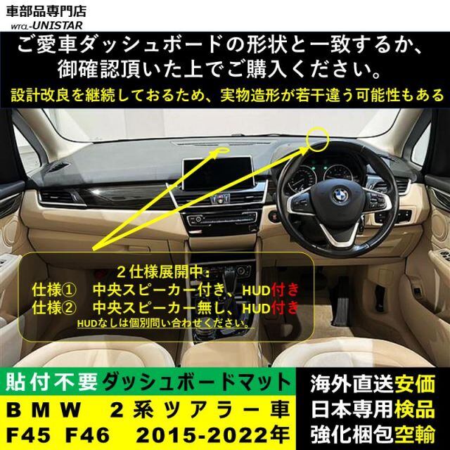 商品名:ダッシュボード マット 汎用 BMW 2系ツアラー車 F45 F46 2015-2022年適用 反射防止 安全運転 高質PU革 ベルベット製 ブラック