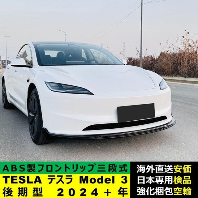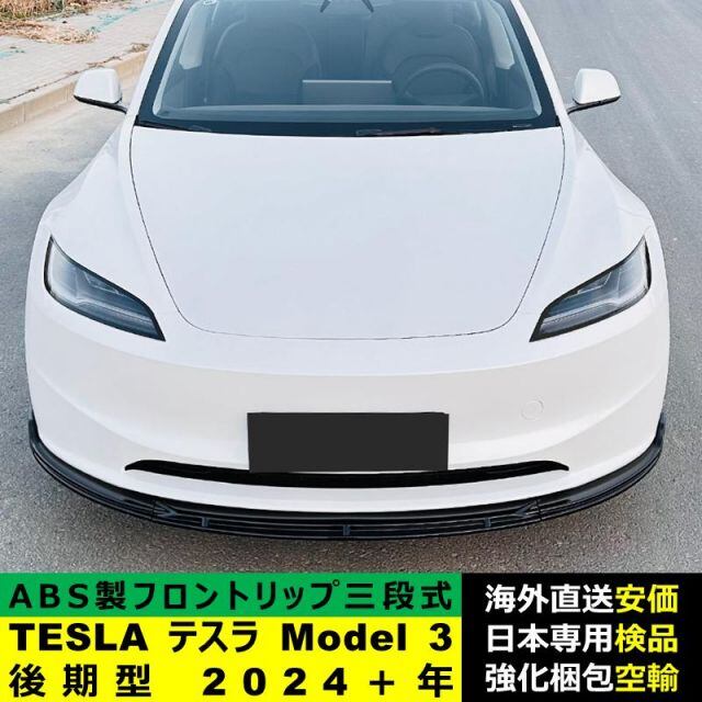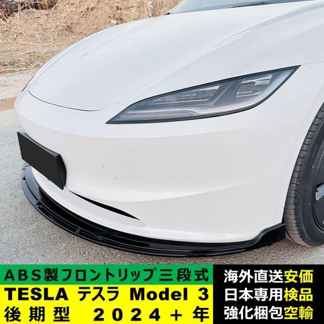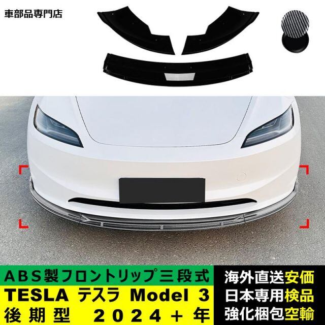 商品名:TESLA テスラ Model 3 後期型 2024-2024年 三段式フロントリップ ガーニッシュ リップカバースポイラー プロテクター キズ防止 ドレスアップ スポイラー ABS製