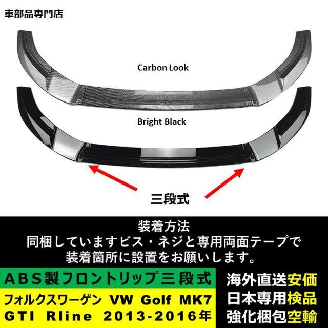 商品名:VolkswagenフォルクスワーゲンVW Golf MK7 GTI R Rline 2013-2016年 三段式フロントリップ ガーニッシュ リップカバースポイラーキズ防止 スポイラー