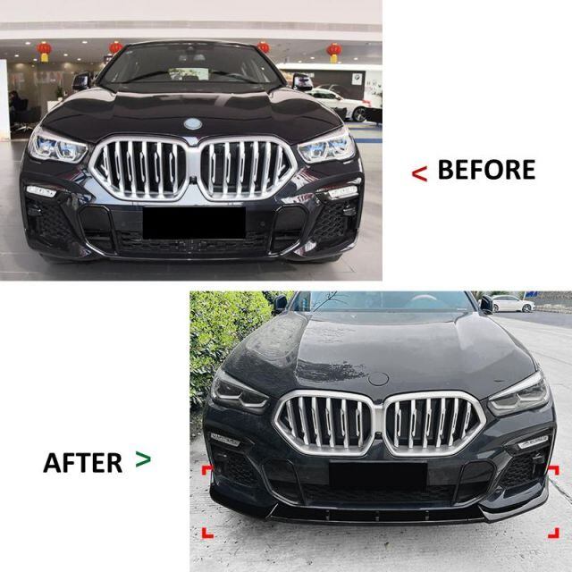 商品名:BMW X6 G06 前期型 M Sport 2019-2022年適用 三段式フロントリップ リップカバースポイラー キズ防止 ドレスアップ スポイラー