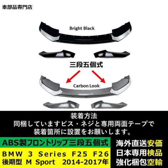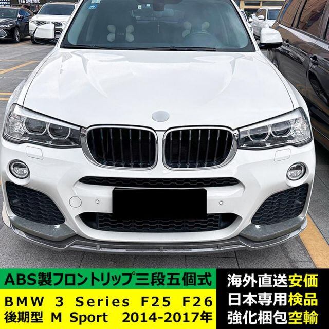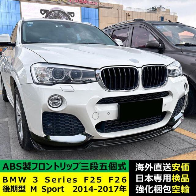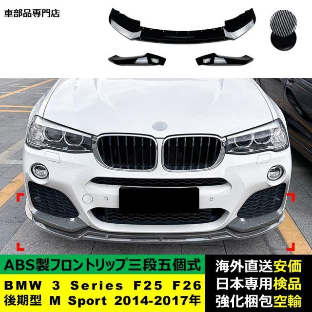 商品名:BMW 3 Series F25 F26 後期型 M Sport 2014-2017年適用 三段五個式フロントリップ リップカバースポイラー キズ防止 スポイラー