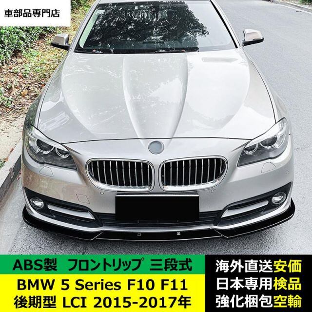 BMW 5 Series F10 F11 後期型 LCI 2015-2017年 適用 三段式フロントリップ ガーニッシュ リップカバースポイラー プロテクター キズ防止 スポイラー ABS製 | unistarcar