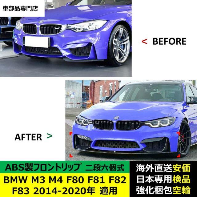 商品名:BMW M3 M4 F80 F81 F82 F83 2014-2020年 適用 二段式六個セットフロントリップ ガーニッシュ リップカバー スポイラー キズ防止 ABS製