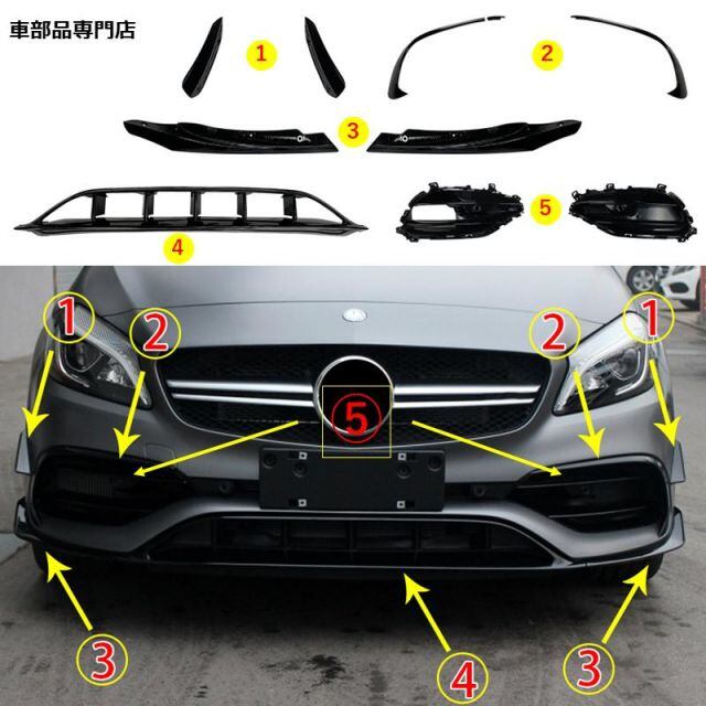 商品名:フロントリップ フィン フォググリル ABS製 メルセデスベンツ A Class W176 後期型専用 2016-2018年 適用