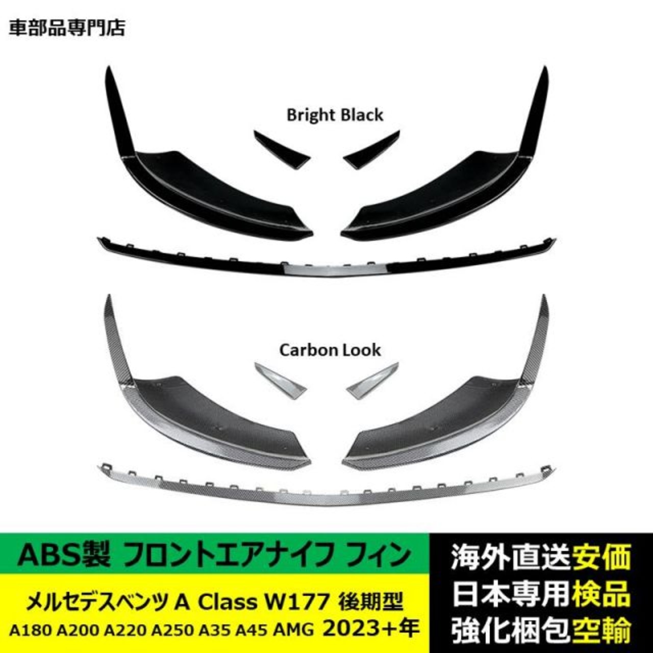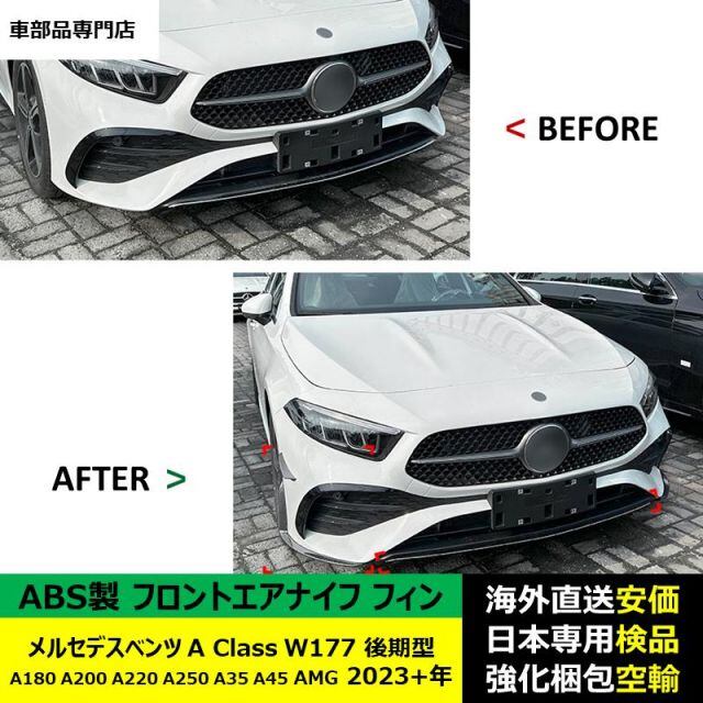 商品名:フロントエアナイフ フィン ABS製 メルセデスベンツ A Class W177 後期型 A180 A200 A220 A250 A35 A45 AMG 2023-2024年 適用