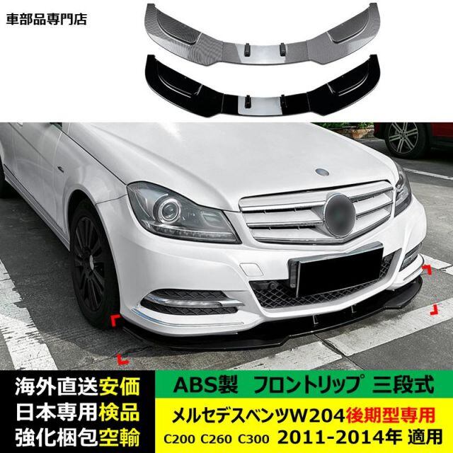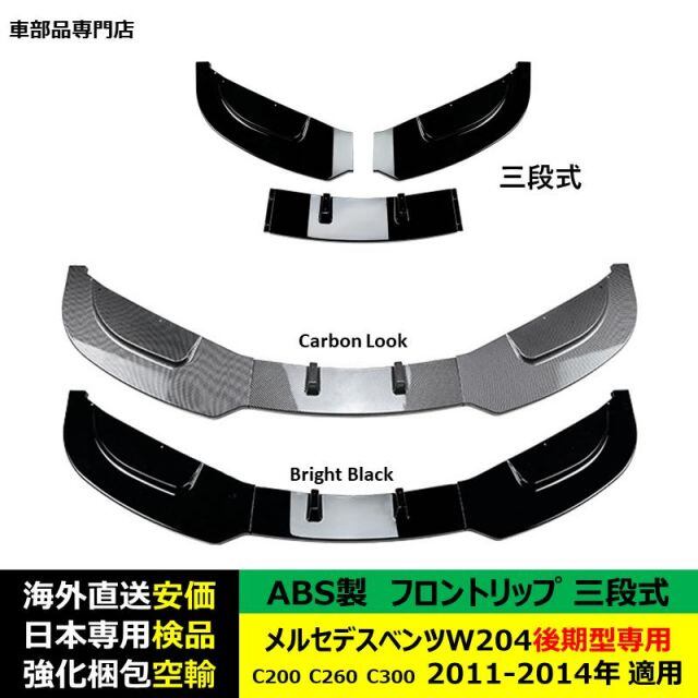 商品名:メルセデスベンツ フロントリップスポイラー 三段式 W204後期型専用 C200 C260 C300 2011-2014年 適用