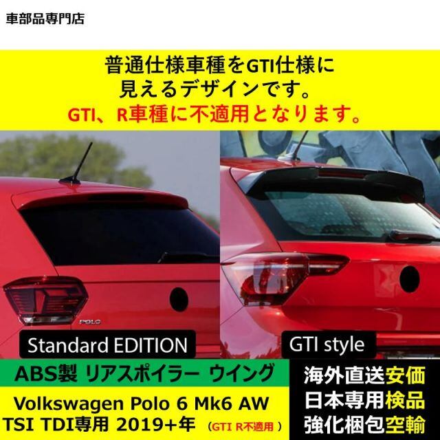 商品名:VolkswagenフォルクスワーゲンVW Polo 6 Mk6 AW TSI TDI専用 GTI R不適用 2019-2024年アスポイラー リアウイング