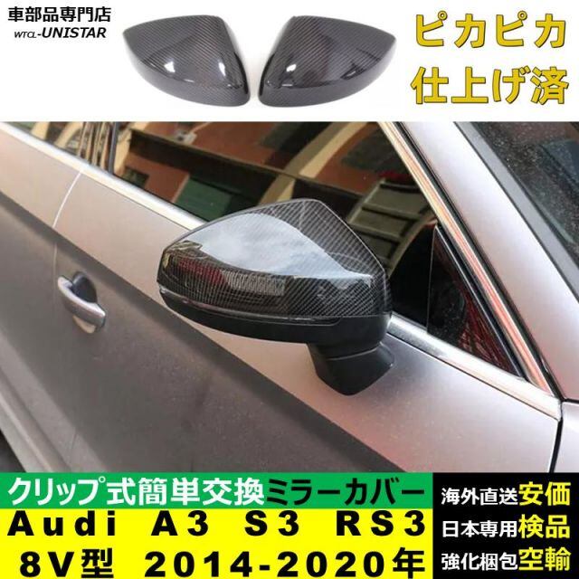 サイドミラーカバー 汎用 アウディ Audi A3 S3 RS3 8V型 2014-2020年 適用 ドレスアップ カバー 交換 キズ隠し カスタムパーツ 車種専用 左右セット 簡単取付 | unistarcar