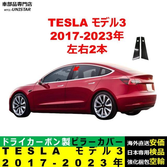商品名:TESLA テスラ モデル 3 モデル Y 2017-2024年 適用 汎用品 センター Bピラー 高級ドライ式カーボンファイバー製 トリム ステッカー トリム 簡単取付