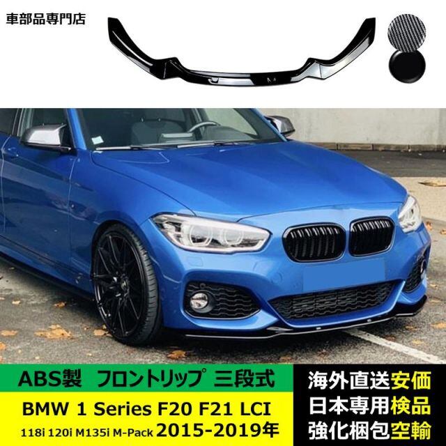 BMW 1シリーズ F20 F21 LCI 118i 120i M135i M-Pack 2015-2019年適用 三段式フロントリップ ガーニッシュ リップカバースポイラー キズ防止 スポイラー ABS製 | unistarcar