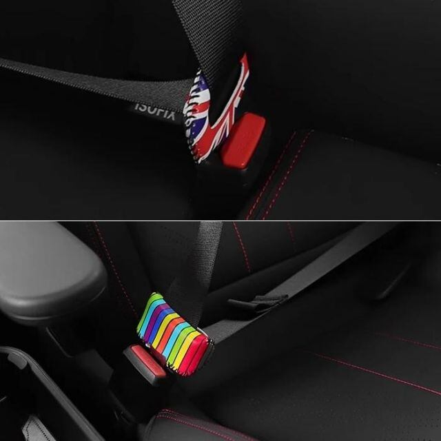 ・シートベルトバックル部分に取り付けるPUレザー製のカバー。 ・ミニにピッタリなカラーリングで車内をドレスアップ。 ・キズ付き防止としても最適。