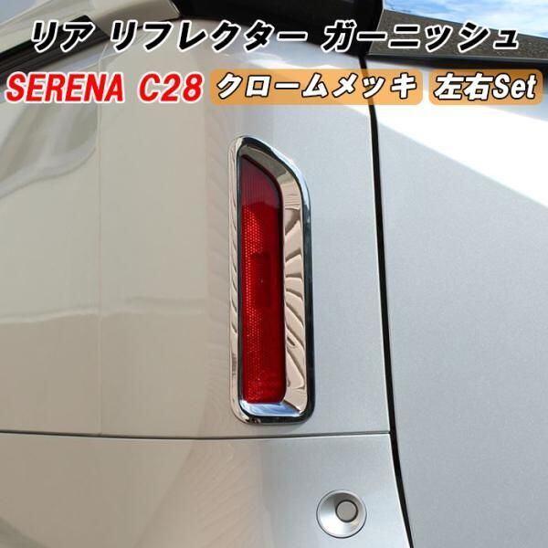 セレナ C28 リア リフレクター パネル カバー クロームメッキ トリム ガーニッシュ テール 反射板 リアリフレクター 新型 車用品 アクセサリー カスタム パーツ