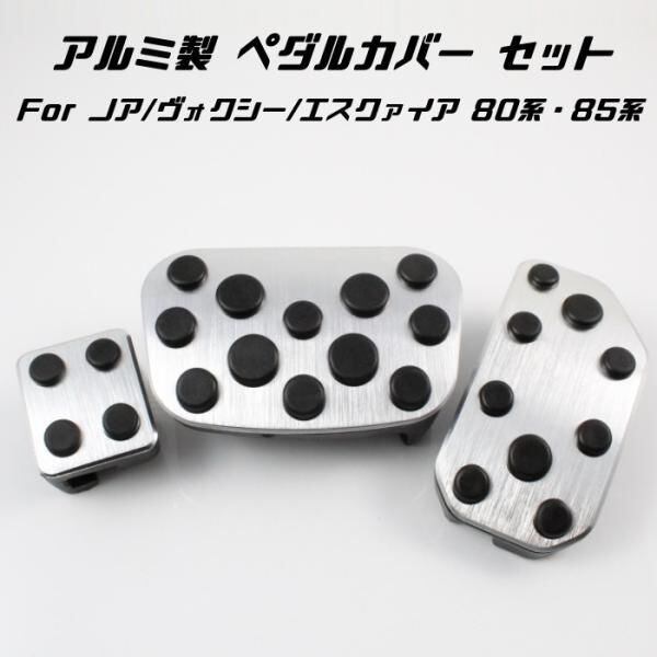 商品名:トヨタ ペダルカバー シルバー 80系 ノア ヴォクシー エスクァイア 前期 後期 3点セット アクセル ブレーキ パーキングブレーキ アルミ製 TOYOTA