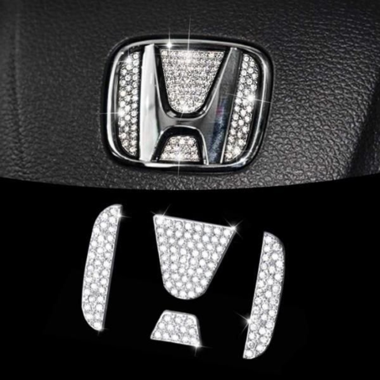 ホンダ ステアリング エンブレム クリスタル トリム シルバー HONDA ハンドル クリスタルストーン ラインストーン
