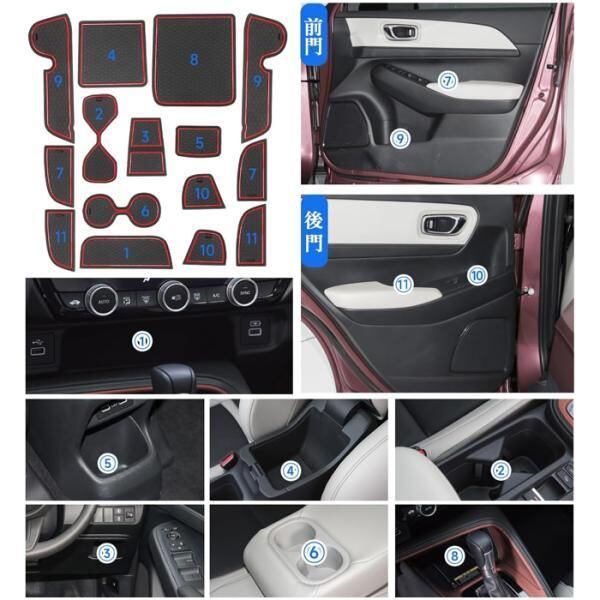 商品名:ホンダ RV系 ヴェゼル RV3/4/5/6 ノンスリップ ラバーマット 1台分 15枚セット ドリンクホルダー インテリア アクセサリー カスタム パーツ 内装 収納 VEZEL
