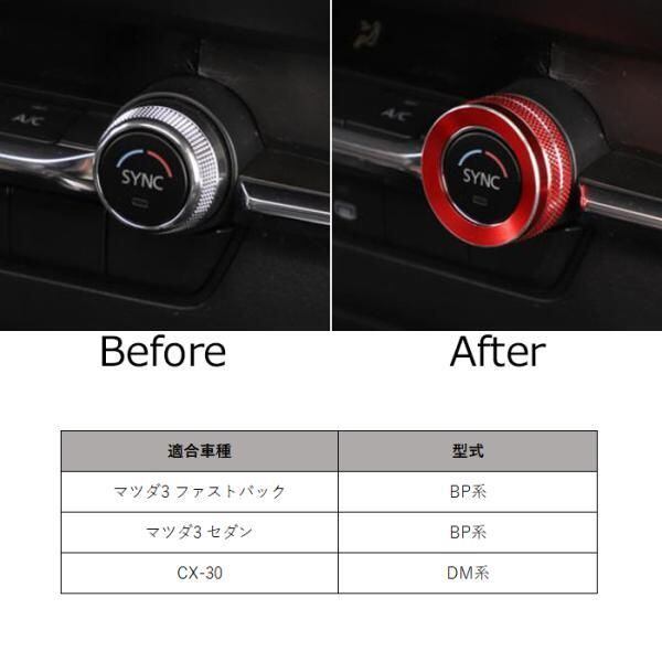 商品名:マツダ エアコン ダイヤル リング カバー マツダ3 CX-30 アルミ製 エアコンダイヤル ノブ つまみ スイッチ アクセサリー カスタム パーツ 内装