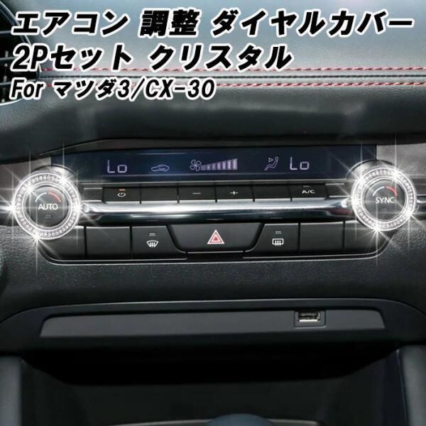 商品名:マツダ エアコン 調整 ダイヤル カバー リング クリスタル 2Pセット マツダ3 CX-30 ラインストーン スイッチ アクセサリー カスタム パーツ