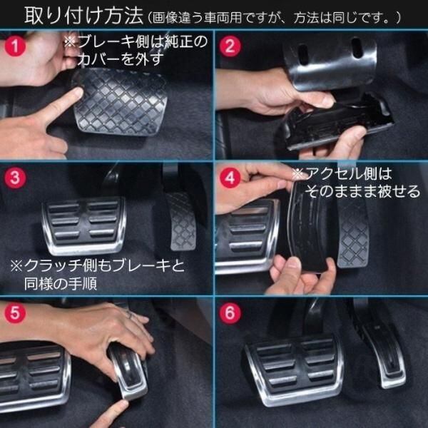 ・ブレーキペダル、クラッチペダル:純正ペダルカバーを取り外し、製品を被せる。
