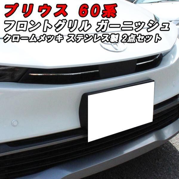 商品名:プリウス 60系 フロントグリル ガーニッシュ クロームメッキ 2P入り フロントバンパー グリル ガード プロテクター アクセサリー カスタム パーツ