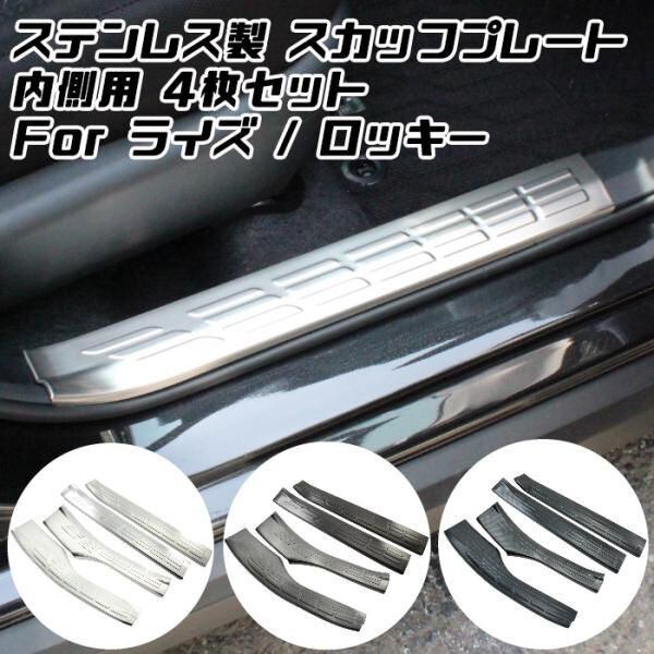 商品名:トヨタ ライズ ダイハツ ロッキー ステンレス製 スカッフプレート 1台分セット 内側用 ドア ステップ プロテクター 傷防止 アクセサリー カスタム パーツ
