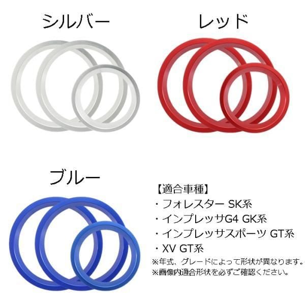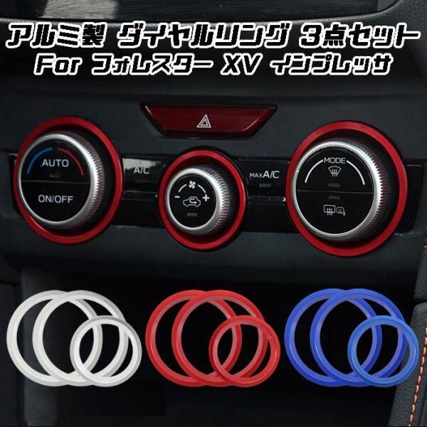 商品名:スバル エアコン ダイヤル カバー リング アルミ製 3点セット フォレスター XV インプレッサ ダイヤルリング ベゼル スイッチ アクセサリー カスタム パーツ