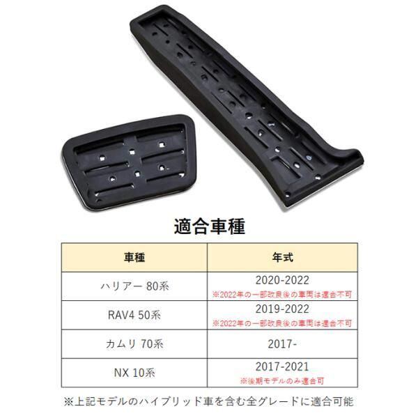 商品名:ハリアー 80系 RAV4 50系 カムリ 70系 NX 10系 ペダルカバー 全4色 アルミ製 トヨタ TOYOTA HARRIER アクセルペダル ブレーキペダル セット