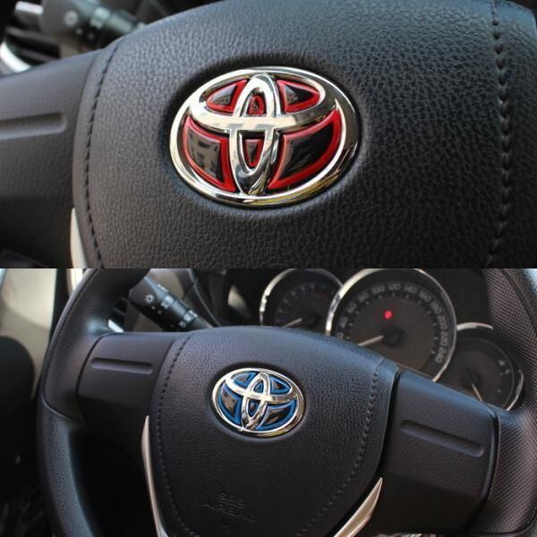 商品名:トヨタ ステアリング エンブレム ステッカー 全3色 3Dタイプ レッド ブルー カーボン ハンドル ハイブリッド シール TOYOTA ステアリングエンブレム