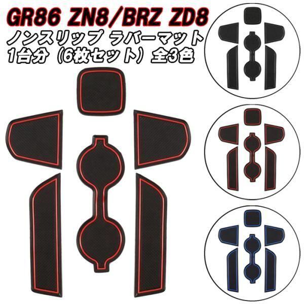 商品名:トヨタ/スバル GR86 ZN8 BRZ ZD8 ノンスリップ ラバーマット 1台分 6枚セット ドリンクホルダー ドアポケット マット アクセサリー カスタム パーツ