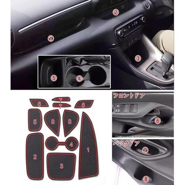 トヨタ 10系 200系 ヤリス ノンスリップ ラバーマット 1台分 11枚セット ドリンクホルダー 専用 ドアポケット アクセサリー カスタム パーツ 内装 収納 YARIS | unistarcar