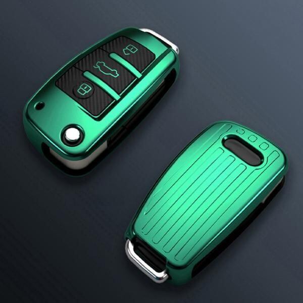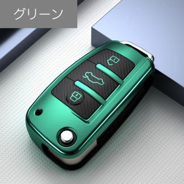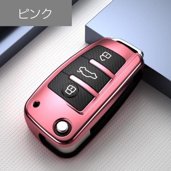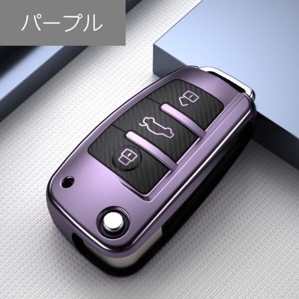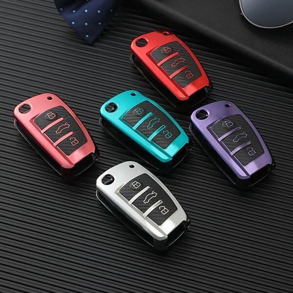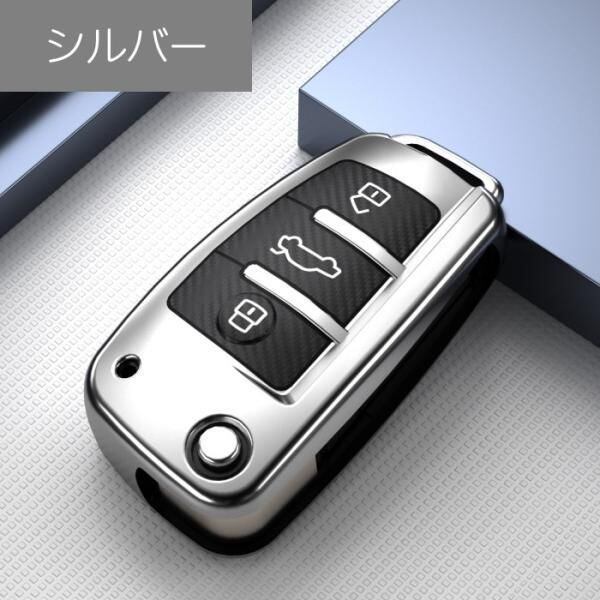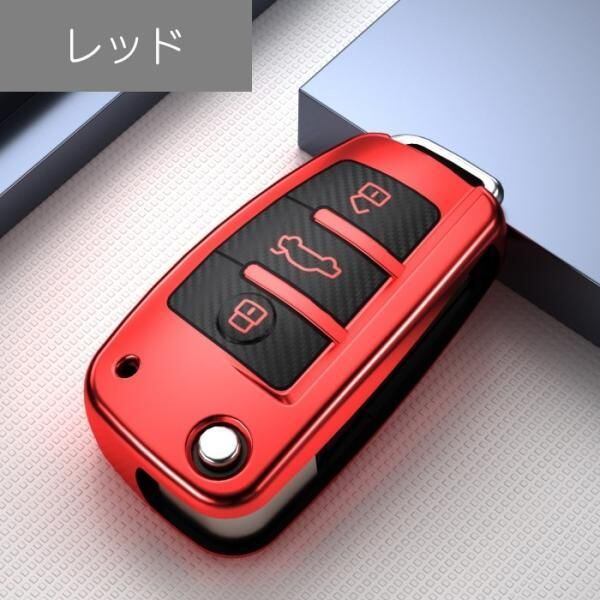 商品名:アウディ キーケース メタリック TPU製 全5色 AUDI キーカバー カーボン調 カーボン柄 スマートキー メッキ 専用設計 キーホルダー アクセサリー