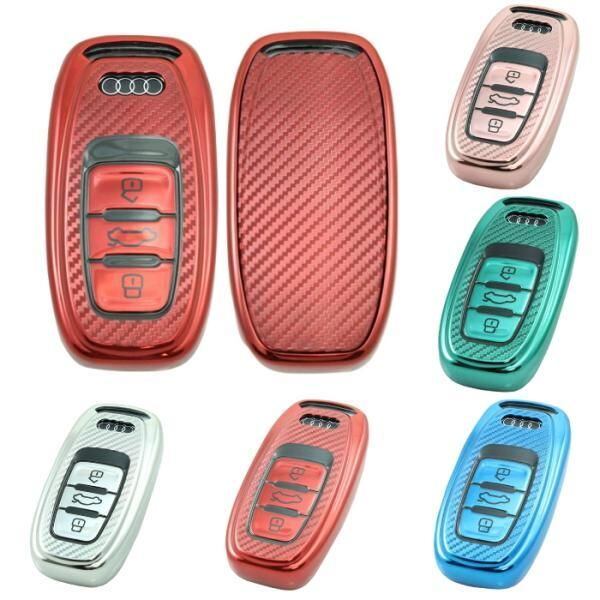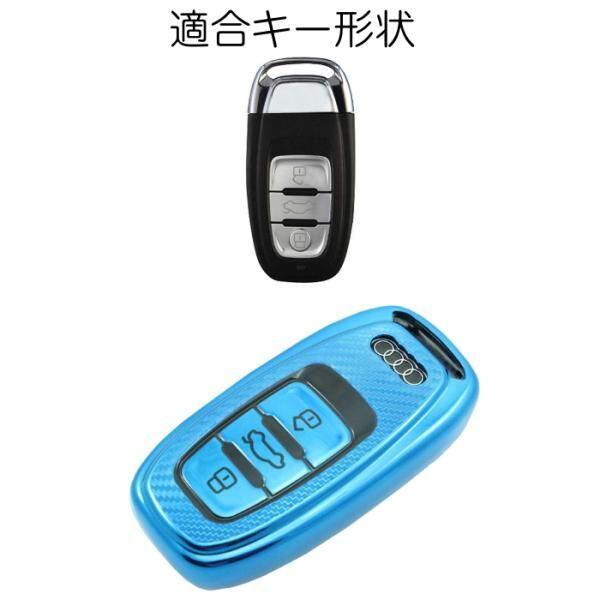 商品名:アウディ TPU キーケース キーカバー 全5色 A3 A4 A5 A6 A7 Q3 Q5 Q7 R8 など メタリック メッキ カーボン柄 キーレス スマートキー