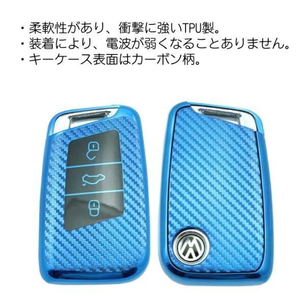 フォルクスワーゲン TPU キーケース キーカバー 全5色 VW Volkswagen ゴルフ7 パサート ポロ など メタリック メッキ カーボン柄 キーレス スマートキー | unistarcar