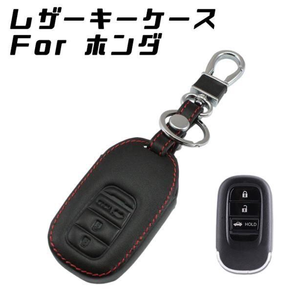 商品名:ホンダ 本革 キーケース ヴェゼル シビック N-BOX など レザー レッドステッチ キーカバー キーホルダー スマートキー キーレス アクセサリー カスタム パーツ