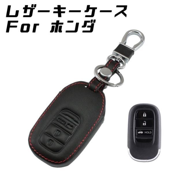 ホンダ 本革 キーケース ヴェゼル シビック N-BOX など レザー レッドステッチ キーカバー キーホルダー スマートキー キーレス アクセサリー カスタム パーツ