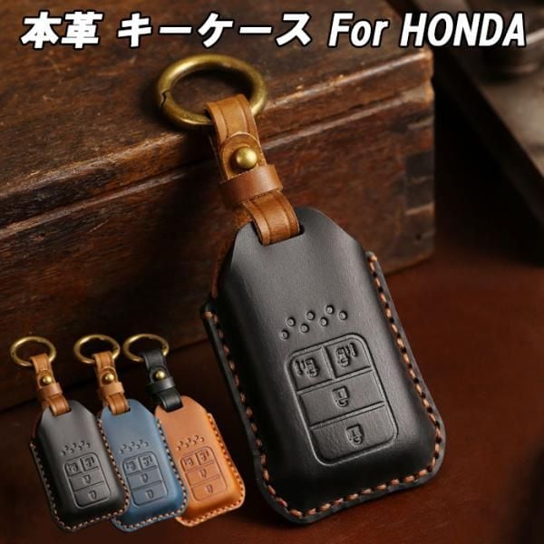 ホンダ 本革 キーケース キーカバー レザー 革 フリード ステップワゴン オデッセイ などに 4つボタン 両側スライドドア アクセサリー カスタム パーツ