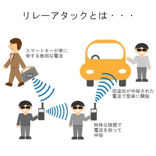 車のスマートキーは常に電波を発しており、キーを保管しているときに電波を盗まれる可能性がございます。