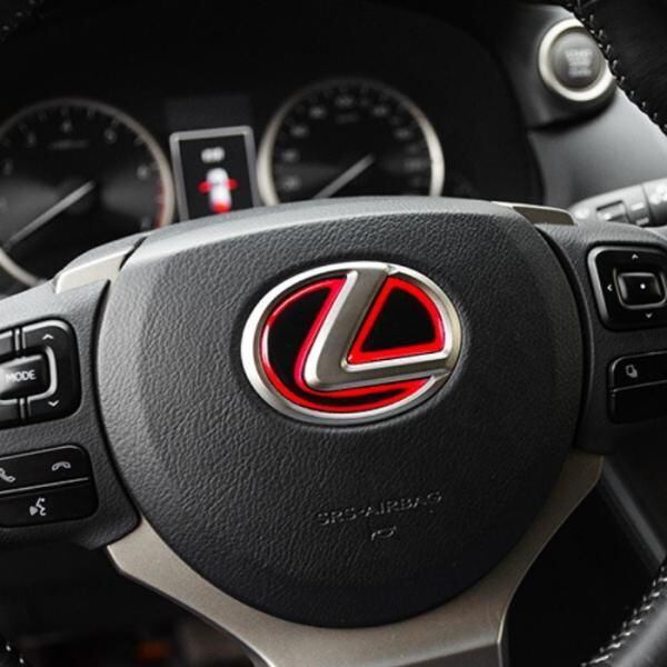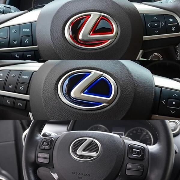 商品名:レクサス ステアリング エンブレム ステッカー タイプ2 全3色 3Dタイプ レッド ブルー カーボン ハンドル ハイブリッド シール LEXUS リアルカーボン
